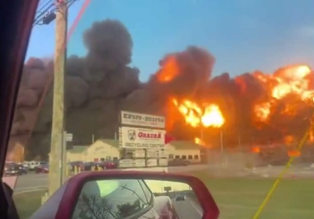 В сети появилось видео с места крушения грузового самолета почтовой компании UPS в аэропорту американского Луисвилля (штат Кентукки). Кадры публикует Telegram-канал Mash. На ролике, снятом из салона проезжающего мимо автомобиля, видно, как наз зданиями поднимается стена огня и черного дыма.